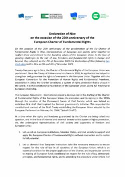 Mouvement Européen > Construire l'Europe > Déclaration de Nice à l’occasion du 25e anniversaire de la Charte européenne des droits fondamentaux > Declaration of Nice Declaration of Nice
